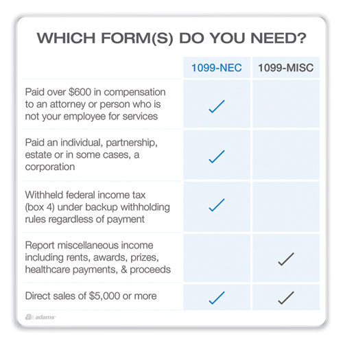 Tax form kits and bundles provide everything you need to report nonemployee compensation. Acid-free paper and heat-resistant ink produce smudge-free, archival-safe records.