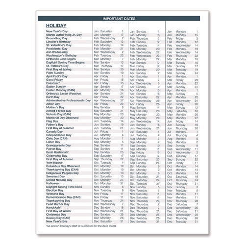 Monthly page spread enables you to see your entire month's schedule. Each page features a note section and a two-month reference calendar view for long-term planning. Includes a double-sided storage pocket. Strong wirebound core with an embossed black simulated-leather cover withstands constant use throughout the year. Made entirely of recycled materials.