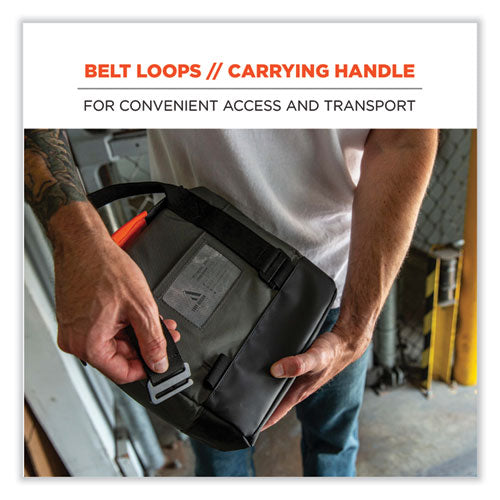 The Arsenal 5185 Half and Full Face Respirator Bag is a durable SCBA respirator storage bag built for heavy use. Much more than your standard issue bag, it's a lightweight yet tough PPE bag for carrying, storing and protecting both half and full face respirators. Durable nylon with a tarpaulin reinforced bottom keeps your critical gear safe and dry, while two webbing loops make for easy attachment to belts or equipment. The magnetic top closure flap opens quickly and closes securely for one-handed access on the go. The zippered top ensures the magnetic closure is locked and loaded for added security. The respirator bag features two webbing belt loops for attaching to all styles of belts for easy on and off. The loops can also be used to secure the bag to equipment. A carrying handle allows for quick transport when unattached.
