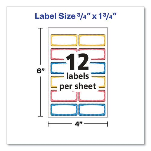 Avery Kids Handwritten Identification Labels, 1.75 X 0.75, Borders: Blue, Orange, Yellow, 12 Labels/sheet, 5 Sheets/pack