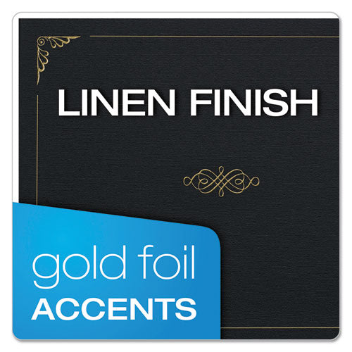 Handsome gold accents distinguish this heavy linen-like stock certificate holder. Reinforced slots securely hold corners for vertical or horizontal presentation of certificate, adding versatility to an elegant presentation.