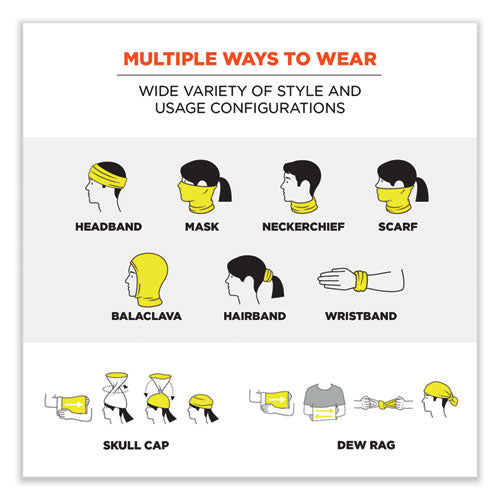 The Chill-Its 6487R Reflective Cooling Multi-Band protects workers from sun, dust and debris while also enhancing visibility and providing cool relief on hot days. When wet, the evaporative cooling technology will instantly activate for hours of cooling. When dry, the material will absorb sweat and wick moisture. It is also rated to UPF 50+ for protection against the sun's harmful UV rays. Unique to this cooling neck gaiter are segmented reflective stripes, strategically placed on the back of the neck where the worker cannot see. Combined with the hi-vis color, it boosts visibility to keep workers safe and seen day and night. The segmented design makes sure the reflective does not interfere with the multi-band's flexibility for comfortable wear in a variety of ways.