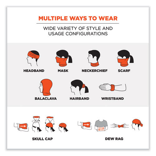 The Chill-Its 6487R Reflective Cooling Multi-Band protects workers from sun, dust and debris while also enhancing visibility and providing cool relief on hot days. When wet, the evaporative cooling technology will instantly activate for hours of cooling. When dry, the material will absorb sweat and wick moisture. It is also rated to UPF 50+ for protection against the sun's harmful UV rays. Unique to this cooling neck gaiter are segmented reflective stripes, strategically placed on the back of the neck where the worker cannot see. Combined with the hi-vis color, it boosts visibility to keep workers safe and seen day and night. The segmented design makes sure the reflective does not interfere with the multi-band's flexibility for comfortable wear in a variety of ways.