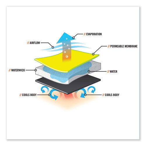 The Chill-Its 6685 Dry Evaporative Cooling Vest offers immediate dry cooling relief that lasts up to three days. The exclusive dry evaporative technology keeps the wearer completely dry and comfortable as opposed to other cooling vests on the market that require soaking. Constructed with high-visibility industrial grade quality nylon to perform in the toughest conditions. Designed with front zipper closure, and the mesh side panels provide additional ventilation and stretch for a comfortable fit. This lightweight cooling vest is machine washable and can be reused over and over. To activate, simply fill the vest with 13 oz to 20 oz water for immediate and long-lasting cooling relief. Not to be worn underneath thick layers of clothing, this vest needs airflow in order to activate and for the evaporation process to take place. Do not clean the inside reservoir. Cooling material is treated with an antimicrobial that inhibits mold growth on the product.