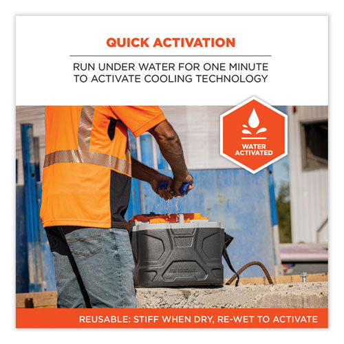 The Chill-Its 6715CT Hard Hat Cooling Pad straps into hard hats to deliver four hours of cooling relief. The low-profile and lightweight liner pad features advanced PVA (polyvinyl alcohol) cooling technology for instant cooling without bulk or slime, making it comfortable to wear under hard hats. This hard hat liner pad fits most hard hats and safety helmets, easily and securely attaching to the suspension with two hook and loop straps. Heat-related illness continuously ranks among the top causes of worksite accidents and fatalities. Evaporative cooling technologies such as PVA are a simple, effective and comfortable solution for heat stress prevention. Similar to how sweat cools the body, evaporative technologies use an external water source to draw heat away-helping to regulate body temperature while providing cool relief. When activated, this PVA cooling hard hat pad is comfortable and refreshing for even the hottest days of the year.