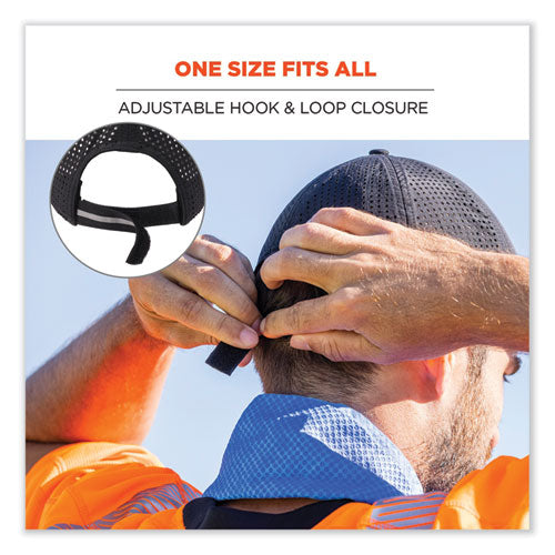 The Chill-Its 8937 Performance Cooling Baseball Hat features an evaporative cooling sweatband and lining that wicks sweat and moisture when worn dry and provides immediate cooling relief when worn wet. Vented back panels increase airflow for breathable comfort, and an anti-odor treatment makes for fresh all-day wear. The black reflective logo and piping enhance visibility in low-light conditions while remaining low-profile for daytime wear. One size fits all, this cooling hat features a hook & loop closure for an adjustable fit. Ideal for construction, landscaping, roofing or anyone working in the heat. It can also be used to reduce the risk of heat stress for outdoor recreational activities. Run or soak the interior of the hat in water until saturated, wring out excess water and wave to activate with airflow—the evaporative cooling process begins instantly and lasts for hours when worn in environments with suitable airflow.