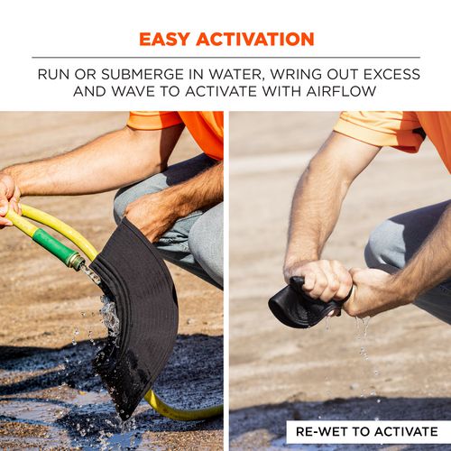 The Chill-Its 8939 Cooling Bucket Hat features a performance evaporative cooling material that provides immediate cooling relief when worn wet and wicks sweat and moisture when worn dry. Designed with a polyester-spandex blend, this cooling sun hat is flexible, easily folds up for storage and offers a comfortable and stretchable fit. The wide brim and UPF 50+ treatment offers face, ear, and neck protection from harmful UV rays and an anti-odor treatment makes for fresh all-day wear. One size fits most, this cooling hat features a back-of-hat cinch cord for an adjustable fit.