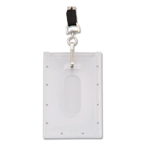Protects your ID card or badge while keeping it visible. An ID card (sold separately) slides in and stays in place, but is also easy to remove when you need it with a thumb cutout and cutout edge on the back. This rigid plastic card holder can be attached to lanyards, clips or card reels. Accommodates cards up to 0.30 mm thick.