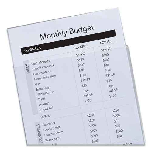 Keep important papers organized and protected against harm with a plastic sleeve. The lightweight, durable plastic is sealed on two sides to keep loose papers securely tucked within the sleeve, while a notch in the front cover lets you quickly grasp papers to remove them. Acid-free, archival-safe material ensures your documents are safely guarded, and the nonstick cover won't cling to inserts and lift print away. The transparent plastic lets you identify the contents of each sleeve with a glance, so you can always be sure you've got the right paperwork for the project.