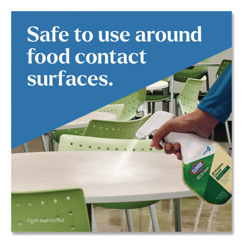 Clorox EcoClean All-Purpose Cleaner cleans grease, grime, dirt, soils and messes, and is safe for use on multiple surfaces throughout the kitchen and bathroom, including counters, appliances, stainless steel, sealed granite, chrome, cooktop hoods, sinks and toilets. This all-purpose cleaning spray meets US EPA Safer Choice Product standards and is a USDA Certified Biobased cleaner, made with 99% plant-based cleaning ingredients. This all-purpose spray is formulated without parabens, dyes, phthalates, phosphates, petroleum solvents and SLES. Great for commercial use in schools, offices, hospitals, veterinary clinics, athletic facilities, airports and more, Clorox EcoClean All-Purpose Cleaner effectively cleans without harsh chemical odors, fumes or residues and is safe for use around food contact surfaces with no rinse required. With SmartTube technology, you can spray every drop and get the most out of the bottle.