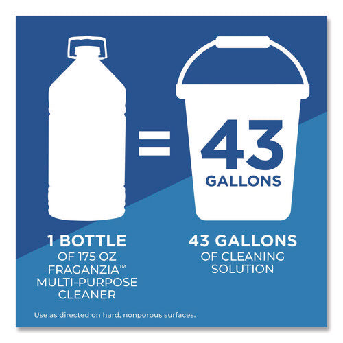 Fraganzia Multi-Purpose Cleaner from CloroxPro is the perfect cleaner for areas where strong odors build up. This versatile cleaner gives you long lasting freshness and can be used facility- wide on a variety of jobs and nonporous surfaces including floors, tiles, countertops, sinks and toilet bowls. Use this everyday cleaner to clean, degrease and deodorize a variety of surfaces in your commercial space. After the job is done, keep your facility clean and fresh smelling with a pleasant, long-lasting scent. It can also be used for freshening clothes or linens in the wash, such as smelly restaurant aprons, bar and table mops, work uniforms and cleaning towels. The large size bottle is perfect for use in offices, daycare centers, restaurants, school and other commercial facilities. CloroxPro, where clean means everything.