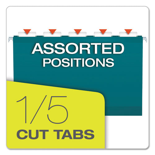 Colored Reinforced Hanging Folders, Legal Size, 1/5-cut Tabs, Teal, 25/box