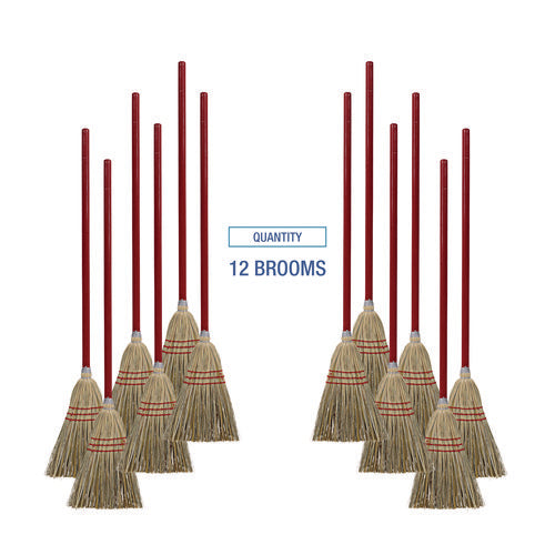 Corn/fiber Brooms, Corn/synthetic Fiber Bristles, 36" Overall Length, Gray/natural, 12/carton