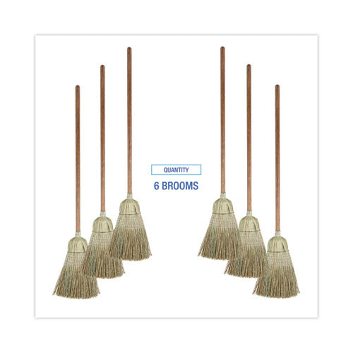 Corn/fiber Brooms, Corn/synthetic Fiber Bristles, 60" Overall Length, Gray/natural, 6/carton
