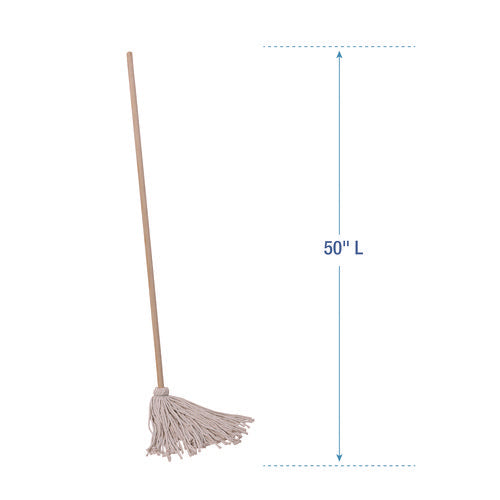 Boardwalk® Cotton Deck Mop is the perfect tool for keeping your deck clean, dry, and maintained. Each mop head is attached to a permanent, solid, natural wood handle for a steady and reliable grip. The fuller mop heads are constructed from white, economy, four-ply, cotton yarn for added absorbency. Built with a lightweight design that's easy to carry and maneuver, making it great for daily use, indoors or outdoors.