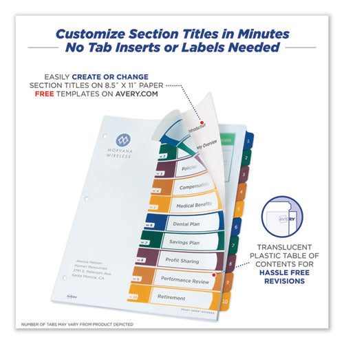 Customizable Table Of Contents Ready Index Dividers With Multicolor Tabs, 10-tab, 1 To 10, 11 X 8.5, Translucent, 1 Set