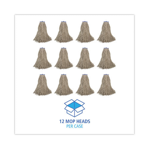 Cut-end Lie-flat Wet Mop Head, Cotton, 24oz, White, 12/carton