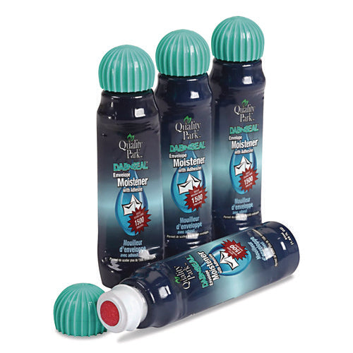 Make quick work of sealing bulk mailings. Easy-to-use moisteners have a spin-off cap and a contoured design that fits comfortably in your hand and prevents spillage. Easily seals a large numbers of envelopes with their quick-drying adhesive. Each bottle is enough for sealing over 1500 envelopes.