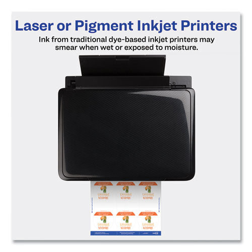 These labels let you take your branding message outdoors. They’re specially made of a sturdy polyester material that holds up to moisture, scuffing and tearing. Perfect for identifying contents of containers at outdoor events, refrigerated products, plants and more — just customize, peel and stick. Our print-to-the-edge feature lets you add a full-color background to make your label really pop. With a few quick steps you can easily personalize them with your logo, product information or QR code. Print-to-the-edge feature lets you add bright, bold colors and text all the way to the edge of the label. Compatible with both laser and inkjet printers.