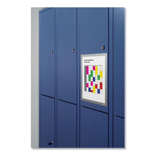 DURAFRAME® Magnetic Sign Holders from DURABLE® are the go-to solution for effortless professional signage display. Easily showcase important information on any smooth, magnetic metal surface with these professional frames, instantly grabbing attention and effectively conveying your message right where you need it. Keep your messaging up to date with the innovative flip-up magnetic frame. This unique design means you can update promotions, announcements, safety information, or directional signage without any hassle. Simply lift the frame, swap out your content, and secure it back in place on the metal surface. This keeps your signage fresh, relevant, and engaging for your employees and customers. With no bulky mounting hardware or unsightly tape, these sign holders have a clean and modern appearance. DURAFRAME's strong magnetic backing securely attaches to any smooth, magnetic metal surface, so you don't have to worry about the inserts dropping out. It can be repositioned easily, giving you the flexibility to adjust your signage as needed. Tailor your signage to fit your unique space perfectly by placing DURAFRAME in portrait or landscape orientation. Ideal for fast-paced and high-traffic environments such as retail stores, restaurants, hotels, offices, warehouses, healthcare facilities, and manufacturing plants, DURAFRAME Magnetic Sign Holders offer practicality and versatility for your signage needs.