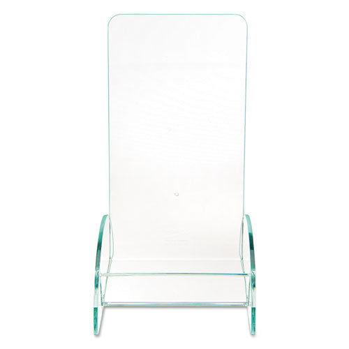 Sleek, euro-style literature holder features green-tinted edges that create the look of a high-end glass display unit. Use where image and value are equally important. More durable and lighter weight than glass, its transparent, acrylic construction provides an unobstructed view of contents. Smooth curves round out the elegance of this display holder. Has the capacity to hold more than 2"d of literature.