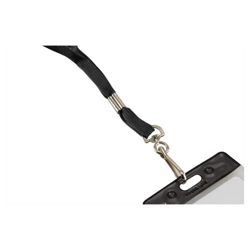 Flat Lanyard, Metal Hook Fastener, 36", Nylon, Black, 100/pack