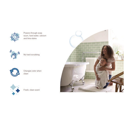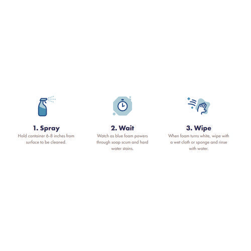 Takes the guesswork out of cleaning. Spray on the penetrating blue foam and OxiClean Stain Fighters go to work on contact, breaking up soap scum and hard water stains. When the foam turns white, just wipe and rinse to reveal a brilliant shine. Cleans with a fresh scent and no obnoxious fumes. Also removes dirt, calcium, lime, grease and grime.