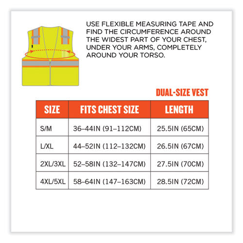 The GloWear 8246Z Mesh Two-Tone Safety Vest is an ANSI 107 Type R, Class 2 economy vest made of 3.3 oz polyester mesh. This hi-vis vest features 2" reflective tape set on a 3.5 contrasting mesh background and reflective piping for enhanced visibility. Built for storage, this vest has two interior and four exterior pockets, a clear ID badge holder and dual radio mic tabs. A zipper closure makes for easy on and off.
