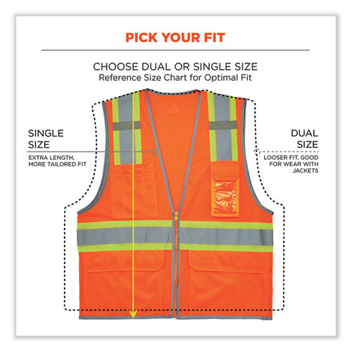 Glowear 8246z Class 2 Two-tone Mesh Reflective Binding Zipper Vest, Polyester, Small/medium, Orange