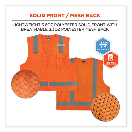 Glowear 8249z Class 2 Economy Surveyors Zipper Vest, Polyester, 2x-large/3x-large, Orange