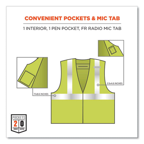 Glowear 8261frhl Class 2 Dual Compliant Fr Hook And Loop Safety Vest, Small/medium, Lime