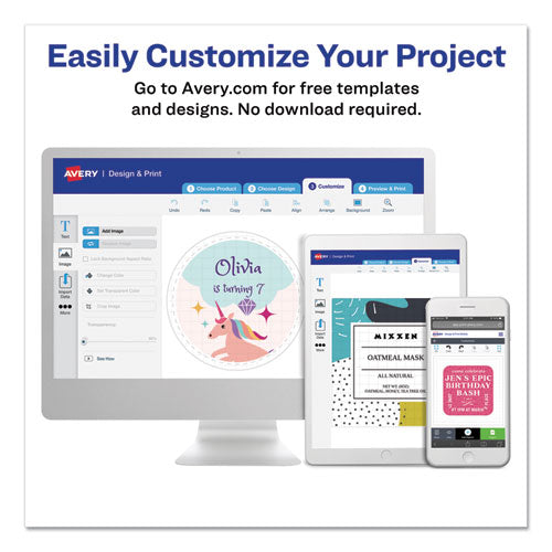Have something important to say? Customize your white labels with attention-getting images or make your most important messages stand out with high-visibility color labels. Ideal for announcements, priority messages, addressing, color-coding, identification/warning labels and more! Easy to customize with free templates from Avery® Design & Print. For laser printers. Now you've got their attention.