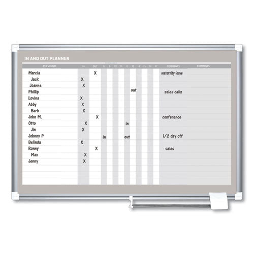 In-out Magnetic Dry Erase Board, 18-person Tracking, 36" X 24", White Surface, Satin Aluminum Frame