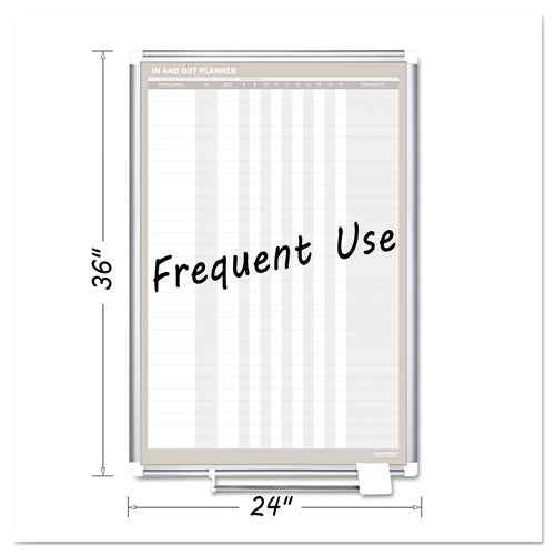 In-out Magnetic Dry Erase Board, 30-person Tracking, 24" X 36", White Surface, Satin Aluminum Frame