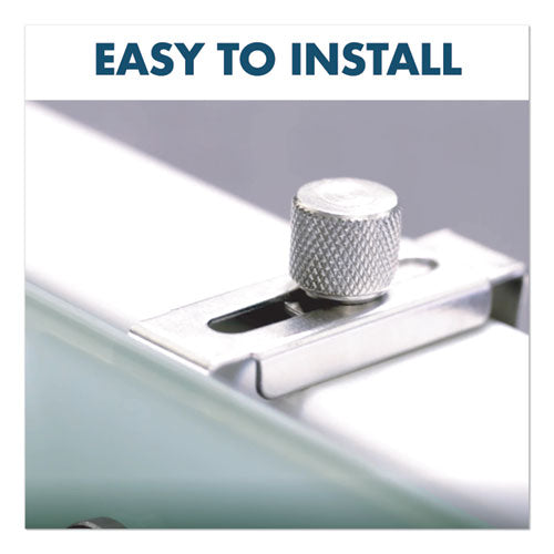 Have your very own message board, with a handy, personal-sized board that fits perfectly in cubicles, even if they have low walls. Tempered white glass surface dry-erase board is durable and will not stain or ghost; provides clean erasability. Sturdy enough to resist scratches and dents. Magnetic quality allows writing and posting of messages with dry-erase markers and rare earth magnets. Frameless board design is sleek and attractive. Two mounting hardware sets are included: adjustable brackets to hang board over cubicle walls and wall mount for traditional hanging. Writing in all colors is easily visible on the white glass board surface.