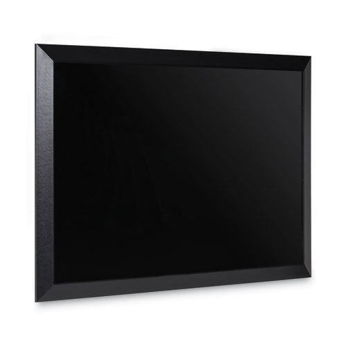 Black wet erase board features a magnetic surface that accepts chalk based wet erase markers for intense color contrast that resists smudging. It's perfect for magnetically posting messages as well as making hand-written notes. The beveled frame has a black linen texture and can be mounted vertically or horizontally.