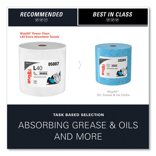 Regardless of your task, industry or budget, our WypAll® wipes, towels and cloths are designed to give you the durability, absorbency and versatility of a laundered cloth with the cost efficiency and hygiene of a disposable. Trust the WypAll* Brand, the one that sets the standard for excellence in wipers. WypAll* L40 Towels are effective wipers that absorb liquids lightning-fast. These towels are made of bonded cellulose using DRC (double re-creped) technology for strength, softness and absorbency. As a wiping towel, it soaks up liquids fast, but all you'll feel is softness, thanks to a plush, touchable outer layer. In fact, it's a popular choice for patient wiping in healthcare industries, for bathing and patient drying. These utility towels are specially designed to absorb liquids, lubricants and oils (in restaurants for wiping counters, in mechanic shops, industrial and commercial factories and more), yet they're soft enough for use on face and hands. Experience the difference in superior absorbency and cleaning at your home or office today! As we look towards the future, Kimberly-Clark Professional is committed to providing a wide collection of essential products and services that help make your workplace exceptional. Our dedication to innovation has helped businesses confidently navigate change and empowered people at work for nearly 150 years and we are committed to do so for years to come.