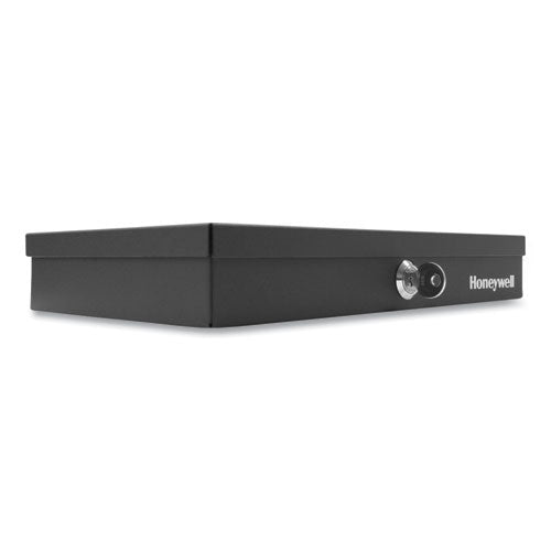 Low Profile Cash Box,1 Bill, 5 Coin Slots, Key Lock, 11.6 X 8 X 1.9, Steel, Black
