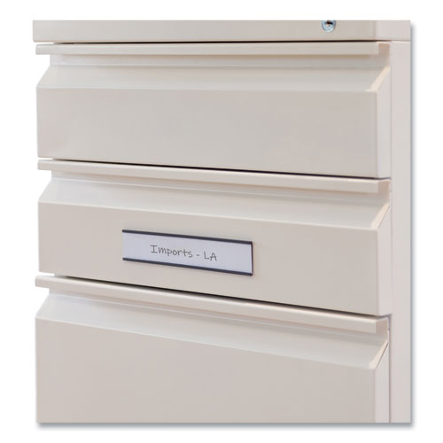 These handy magnetic data card holders by U Brands® make building and maintaining your planning board a breeze. To use, simply insert desired cardstock label into the side slot of the magnetic label holder. Perfect to visually communicate updates and quickly arrange data as needed, or simply use as removeable labels for filing cabinets. Features a strong magnetic hold that Is perfect to use on any steel surface.