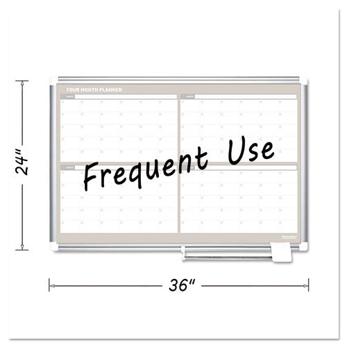 Magnetic Dry Erase Calendar Board, Four-month Planning/scheduling, 36" X 24", White Surface, Satin Aluminum Frame