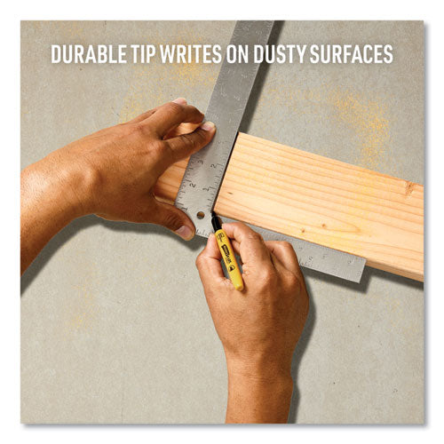 Built for situations where standard markers just aren't enough, Avery® Marks A Lot® UltraDuty™ markers are ideal for construction sites, warehouses, workshops and more. Avery® industrial markers work great on plastic, wood, metal and concrete. The durable tip also works on abrasive, dusty, wet and oily surfaces without clogging. Specially engineered to resist water, abrasion and smearing, the heavy-duty ink makes sure that writing lasts through the harshest conditions. The cap also features a clip to keep markers secure in pockets and to prevent rolling off of surfaces.