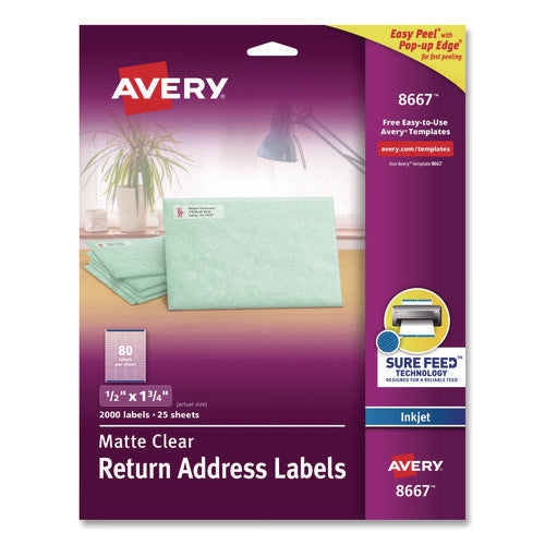 Matte Clear Easy Peel Mailing Labels With Sure Feed Technology, Inkjet Printers, 0.5 X 1.75, Clear, 80/sheet, 25 Sheets/pack