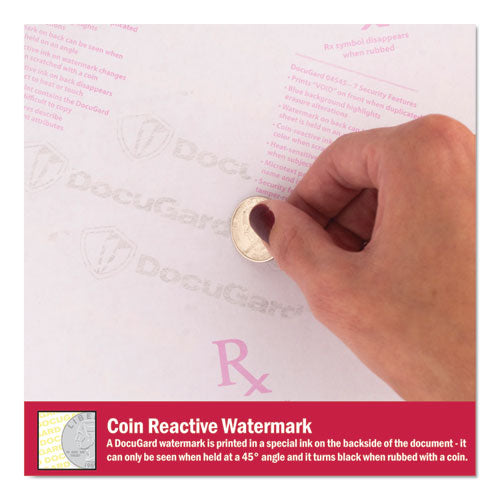Prevent unauthorized copies and safeguard confidential business, legal, healthcare and personal documents. Designed to meet and exceed federal guidelines for tamper-resistant security paper set by the Centers for Medicare and Medicaid Services. Colored background with erasure protection. Artificial watermark is coin reactive.