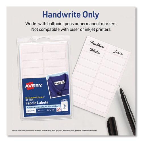 No-iron Fabric Labels, 0.5 X 1.75, White, 18/sheet, 3 Sheets/pack