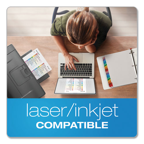 Cardinal® OneStep® Binder Dividers give you a printable table of contents with matching tab dividers. Instantly create a custom binder divider set with easy to use free templates online. Use matching tab dividers in vertical or landscape format. Pages are laser/inkjet compatible with a three hole punch. Fits neatly within 8.5 x 11 inch binders with regular letter sized paper.