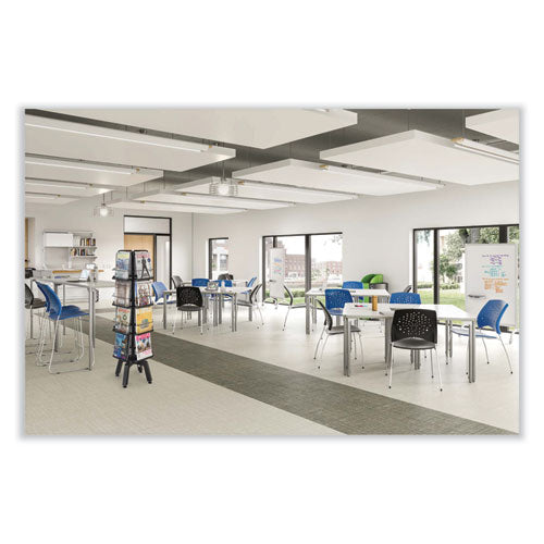 Perfect for reception areas or waiting rooms, this contemporary rotating literature rack offers 360° access, making it easy to view and organize all your brochures, pamphlets, and magazines. Designed with 1" capacity pockets, it accommodates a variety of materials while keeping them neat and accessible. Its sleek steel mesh construction is both durable and modern, while the black powder coat finish ensures long-lasting quality. This stylish and functional rack is a great addition to any professional setting, helping to keep your space tidy and your materials easily reachable.