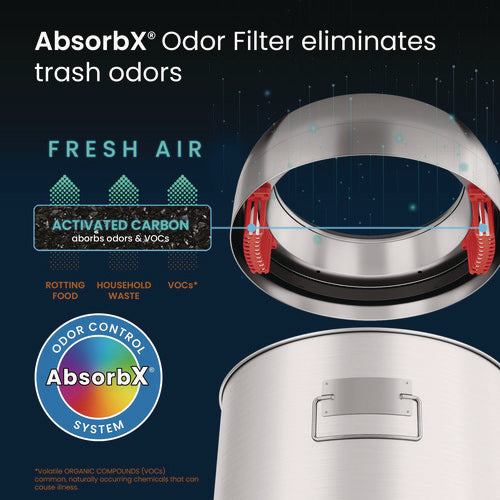 Upgrade your space with our sleek and efficient open top trash can! This bin is designed for quick and easy disposal with a convenient open top lid. Dual odor filters ensure that your surroundings stay fresh and clean, making it ideal for hospitality, medical, multi-family residential and commercial environments. The durable stainless steel body and ABS plastic lid offer a stylish and long-lasting solution, while the slim, space-saving design fits perfectly into any setting. Enhance your facility today with this practical and elegant trash can.