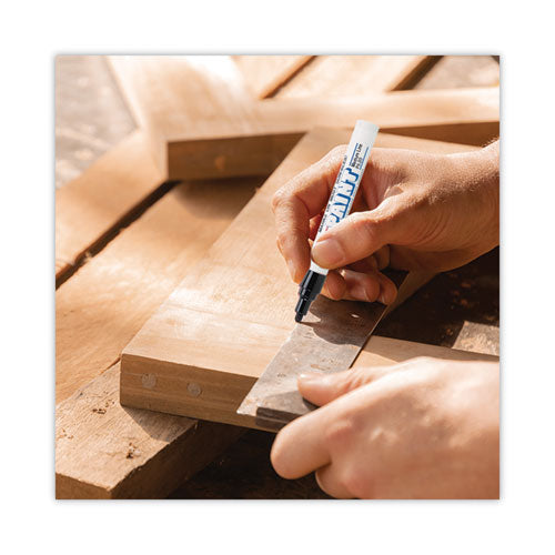 Create permanent and accurate marks on virtually any surface with uni Paint oil-based paint markers from uni-ball. These markers deliver strong and clearly visible lines. Quick-drying paint is water, fade, heat and abrasion resistant. Valve action control provides excellent flow and coverage, while also preventing the marker from drying out if left uncapped. Permanent paint colors mark opaque and glossy on both light and dark surfaces, no matter what it is applied to. The metal barrel and durable tip ensures a long marking life. Ideal for manufacturing, construction sites, automotive, metal fabrication, aviation, marking oily, greasy items and identifying parts or equipment outside.