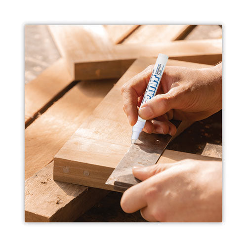 Create permanent and accurate marks on virtually any surface with uni Paint oil-based paint markers from uni-ball. These markers deliver strong and clearly visible lines. Quick-drying paint is water, fade, heat and abrasion resistant. Valve action control provides excellent flow and coverage, while also preventing the marker from drying out if left uncapped. Permanent paint colors mark opaque and glossy on both light and dark surfaces, no matter what it is applied to. The metal barrel and durable tip ensures a long marking life. Ideal for manufacturing, construction sites, automotive, metal fabrication, aviation, marking oily, greasy items and identifying parts or equipment outside.