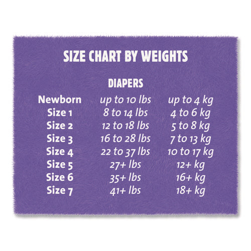 Keep moisture away from babies' skin with these premium absorbency baby diapers. The hypoallergenic construction is ideal for infants with sensitive skin. The cloth-like outer layer adds a soft finish to each diaper. Easy-lock fastener tabs provide an adjustable fit, while leg cuffs and an elastic waistband deliver added comfort. Feature a unisex design and ultra-absorbent core, providing reliable protection against leaks for girls and boys.